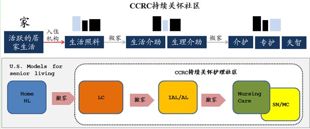 CCRC持续关怀社区是一种复合式的老年社区,通过为老年人提供自理、介护、介助一体化的居住设施和服务,使老人在健康状况和自理能力变化时,依然可以在熟悉的环境中居住,并获得与身体状况对应的照料服务。