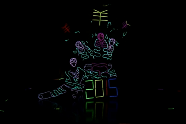 营销策划部门自编自演的《炫光魅舞》让你眼前一亮,漆黑的夜里展现出灯光带来多种颜色的舞动。